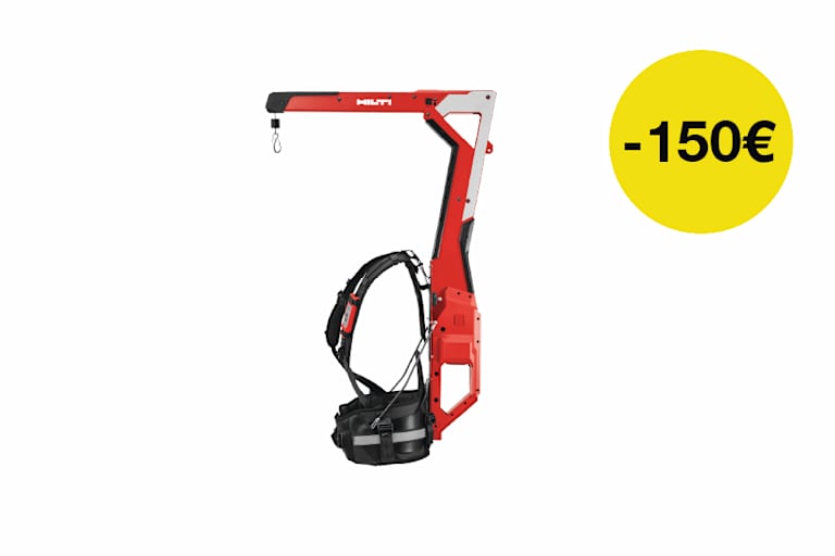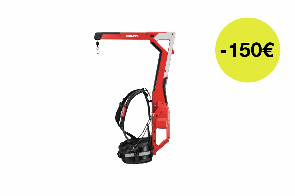 Exoesqueleto para uso em obra com distribuição ativa do peso, permitindo trabalhar “em gravidade zero” durante demolições e perfurações em paredes. Utilize o código no checkout: BOASVINDAS